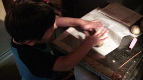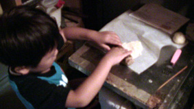 生地をこねて、ねかして、伸ばしているところ。