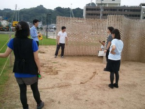 かまぼこカーテン周辺に植栽する植物の検討・打合せを八幡浜市の担当の方と行いました